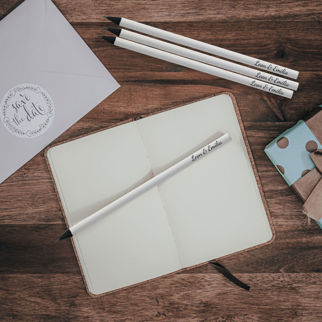 Besonders beliebt sind diese Bleistifte als liebevolles Detail für Hochzeiten – beispielsweise als Platzkarte, Gastgeschenk oder als Ergänzung zu Papeterie und Tischdekoration. Ebenso eignen sie sich hervorragend für Einschulungen, Geburtstage oder kreative Sets sowie als stilvoller Werbeartikel für Unternehmen, Events oder Messen. Schlicht, praktisch und individuell – ein Alltagsprodukt mit besonderer Wirkung.